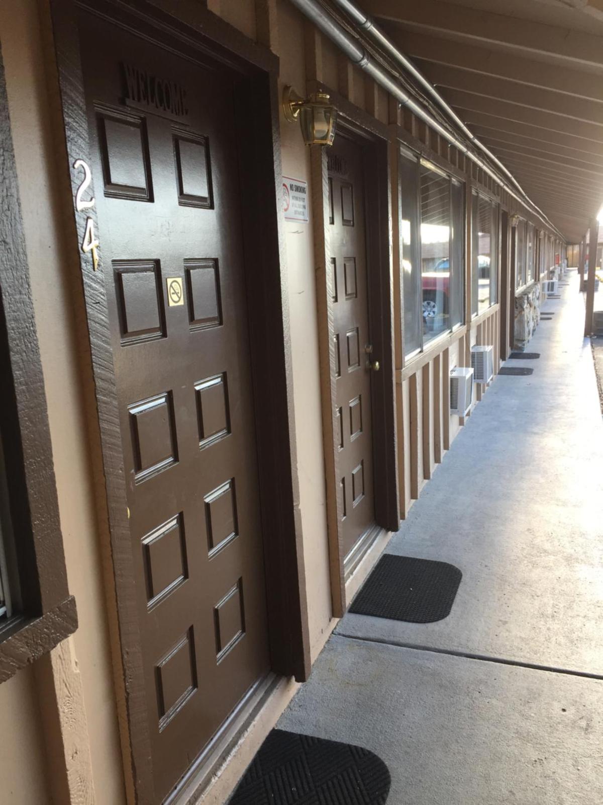 Images showcase the property’s modest exterior with easy parking, a seasonal outdoor pool with loungers, and simple guest rooms equipped with basic amenities. Photos also highlight the lobby, BBQ area, and nearby historic Grass Valley attractions.